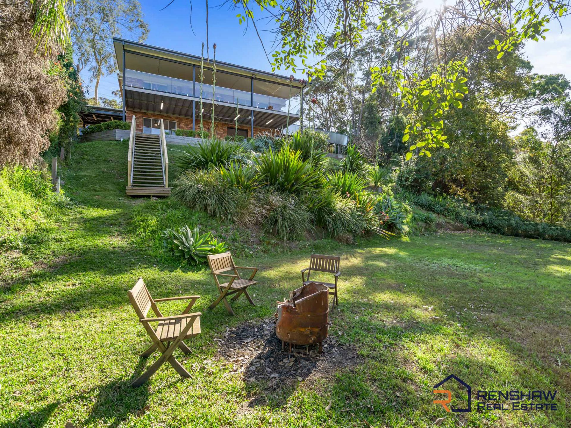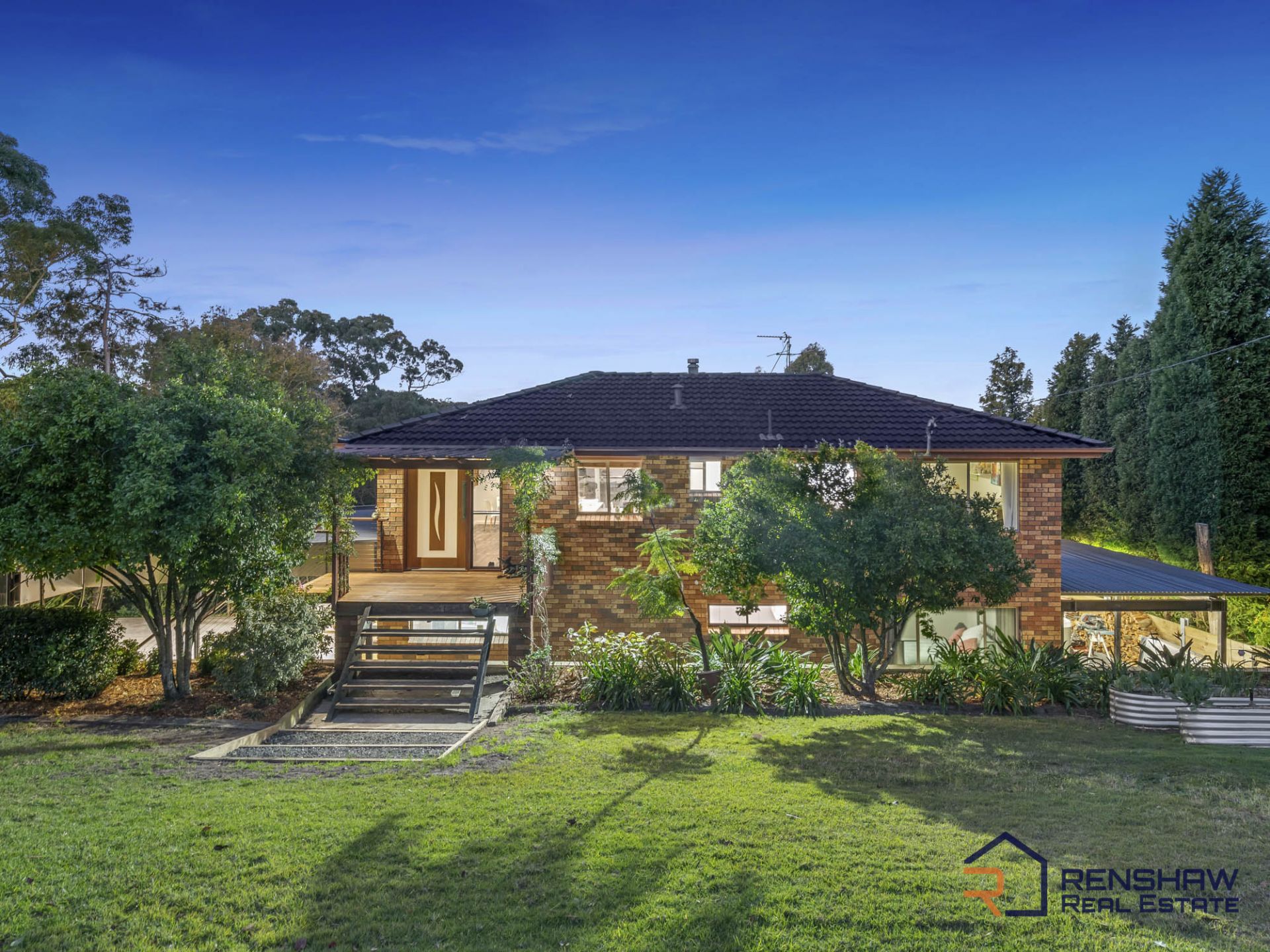 The panoramic view of this beautiful home reveals from above what the street view cannot. This two-storey home has a large deck, plenty of outdoor living spaces and beautifully manicured gardens which indicate that it is no ordinary property. Backing onto bush reserve, offering views of the lake and privately located amongst leafy surrounds, this home is set on a huge 2,460m2 (approx.) of land.
